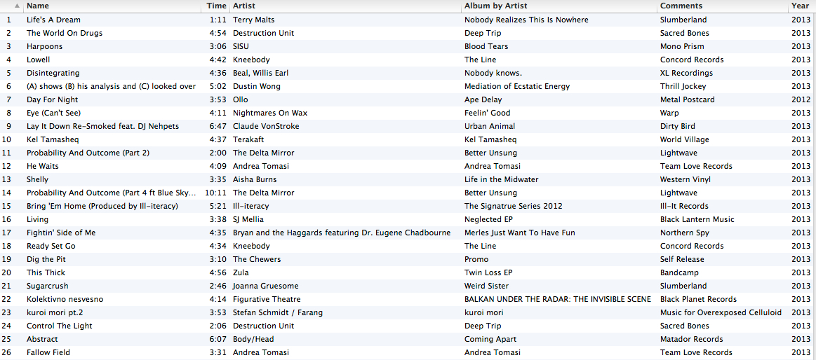 From the wreckless abandon of Destruction Unit to the angelic voice of Andrea Tomasi via Terakaft of the Sahara Desert and Claude VonStroke of the dance-floor. another impossible musical journey…